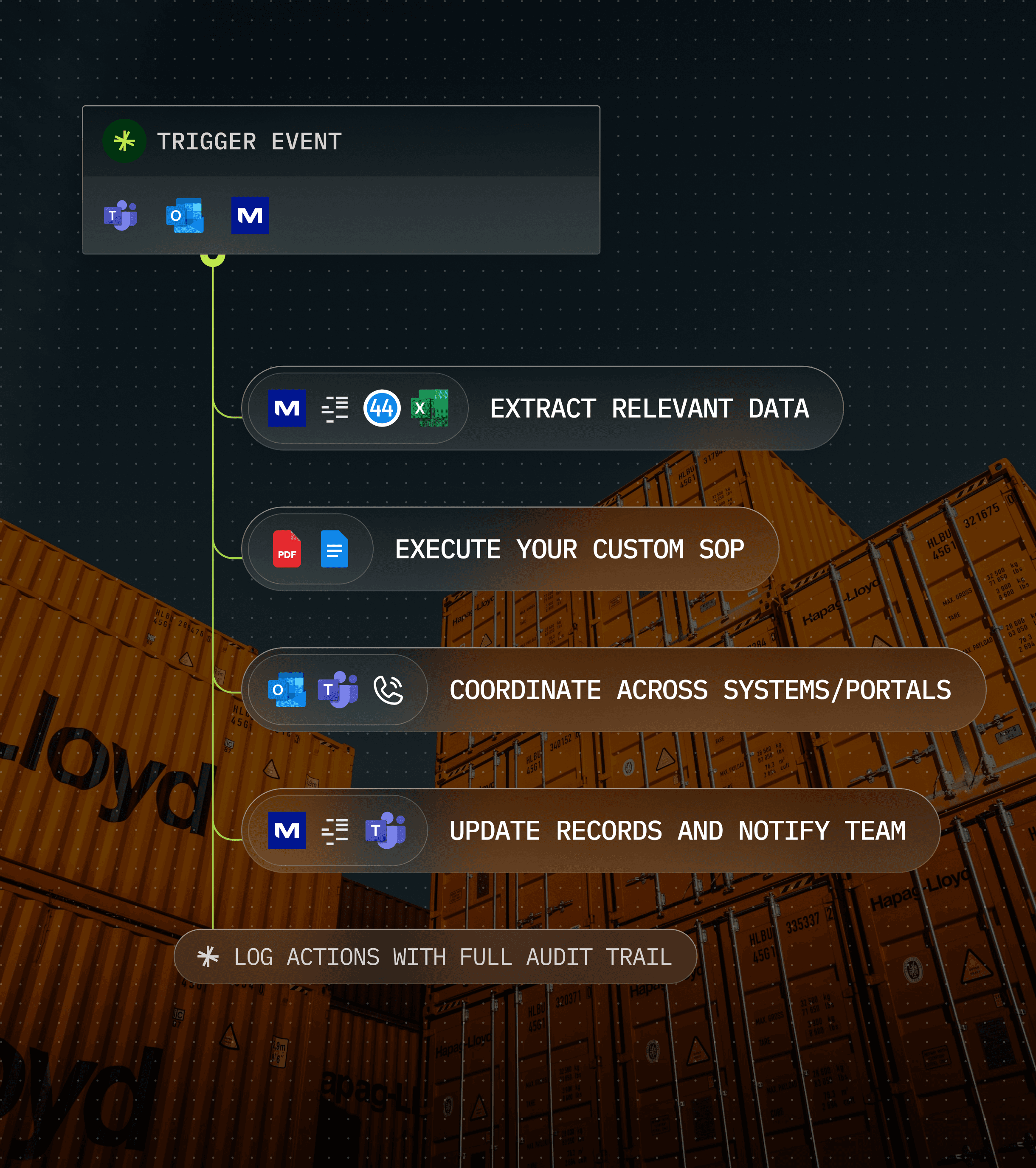 Sidecar can take over repetitive work in quoting, operations, track & trace, documentation, or finance without changing your systems.